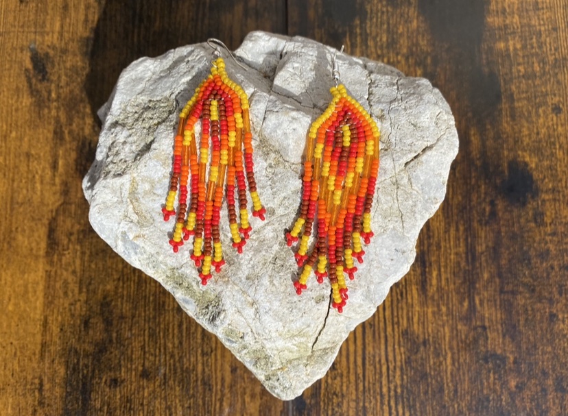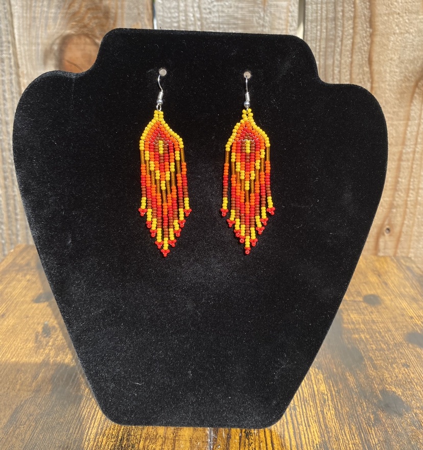 Orange & Yellow Long Hand Beaded Dangle Earrings 3 Inch