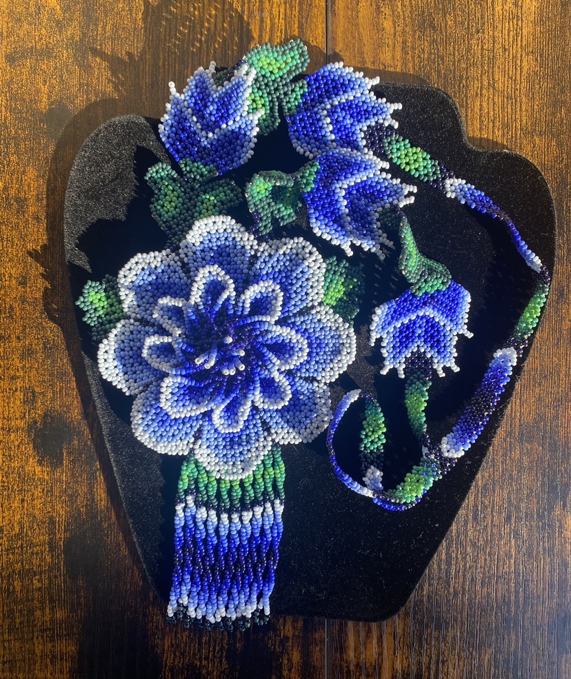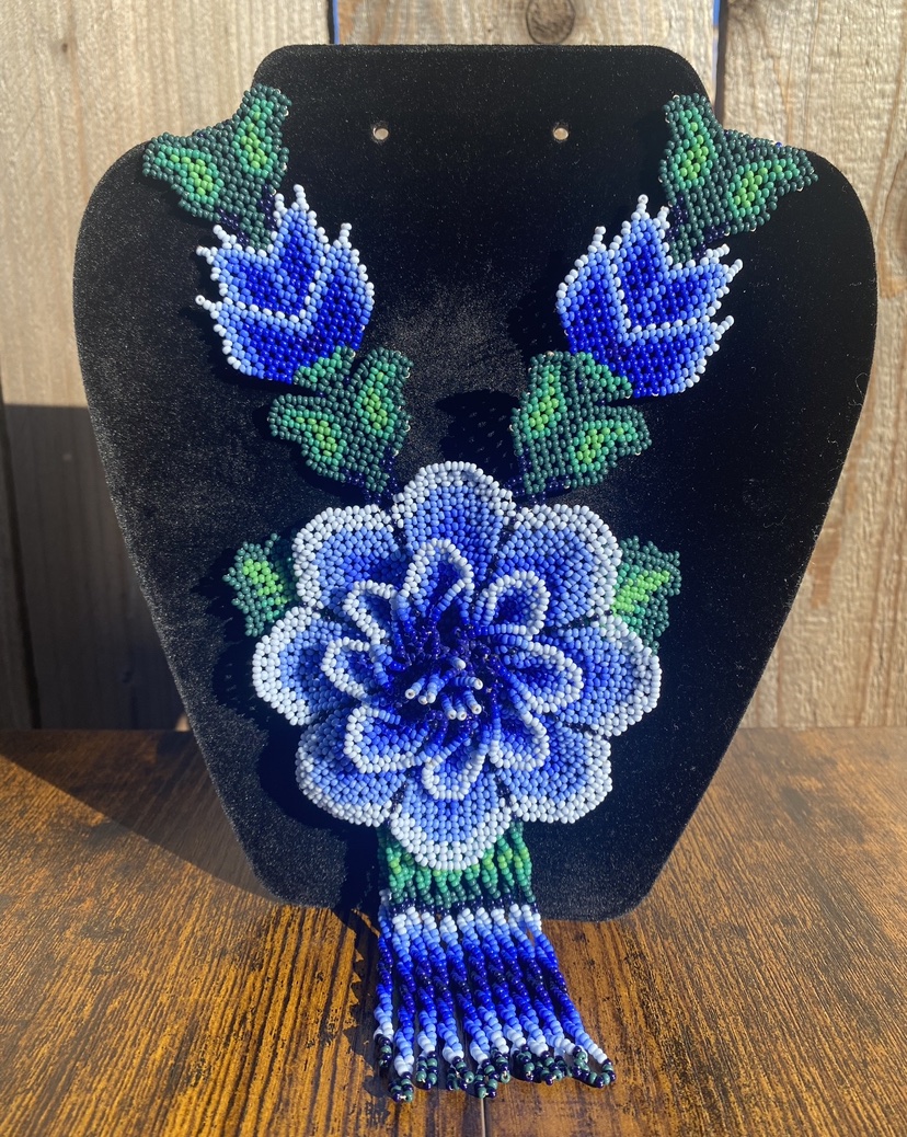 Large Blue Flower Huichol Necklace 30 Inches