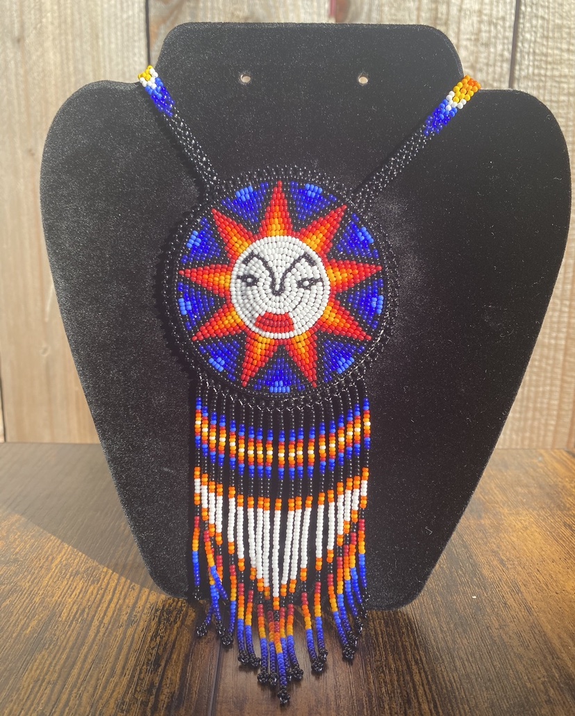 Blue Sun Beaded Medicine Pouch Necklace (30 Inches)