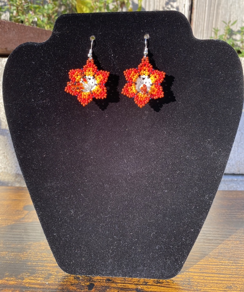 Orange Hand Beaded Flower Earrings 1.5 Inch
