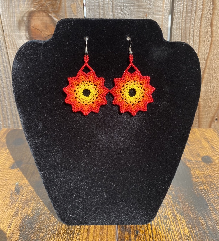 Red & yellow Hand Beaded Sun Dangle Earrings 2.5 Inch